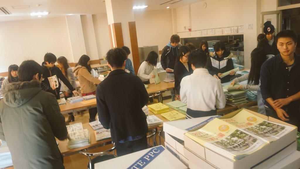 合格した人たちのためにチラシ詰めをし