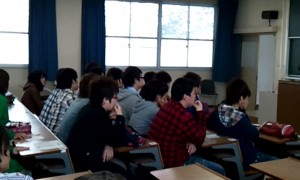 まずは、ぐるりんおゆずりマーケットの簡単な説明を聞いていただきます。 皆、真剣そのもの。