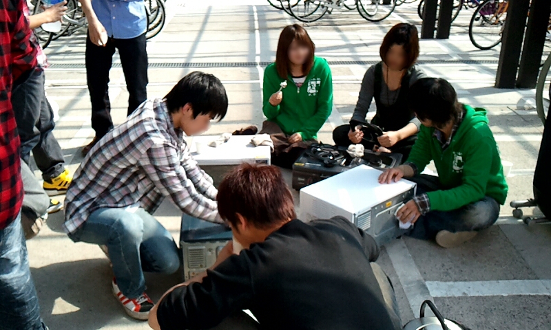 皆、先輩とこれからの大学生活などのことを聞きながら、和気あいあいと作業をしています。